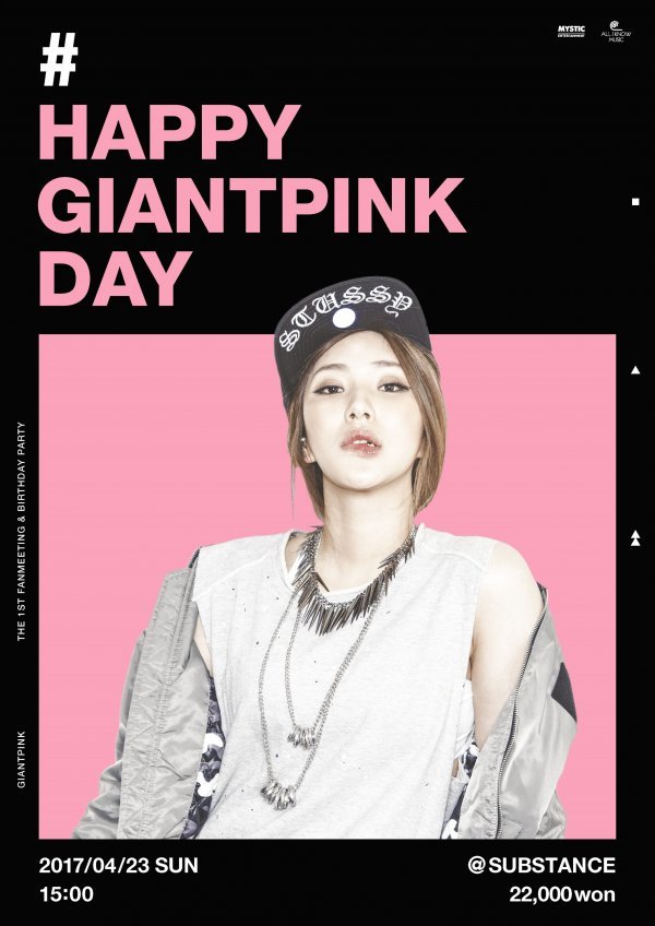 자이언트핑크는 오는 23일 자신의 생일을 맞아 \'HAPPY GIANTPINK DAY(해피 자이언트핑크 데이)\'라는 이름으로 서울 용산구 SUBSTANCE(섭스탠스)에서 팬미팅을 연다.