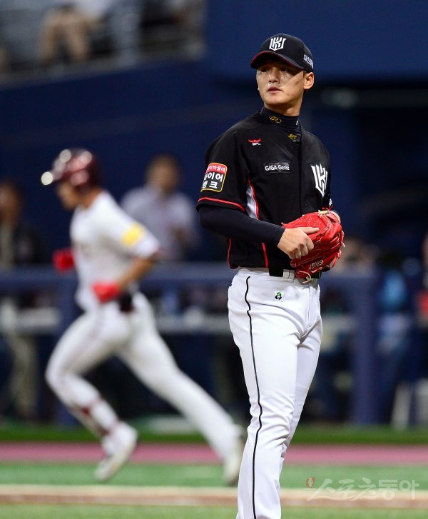 11일 서울 고척스카이돔에서 ‘2017 타이어뱅크 KBO 리그’ kt위즈와 넥센히어로즈의 경기가 열렸다. 선발 투수 kt 주권이 5회말 1사 1,2루 넥센 김하성에게 좌월 스리런을 허용한 후 외야를 바라보고 있다.