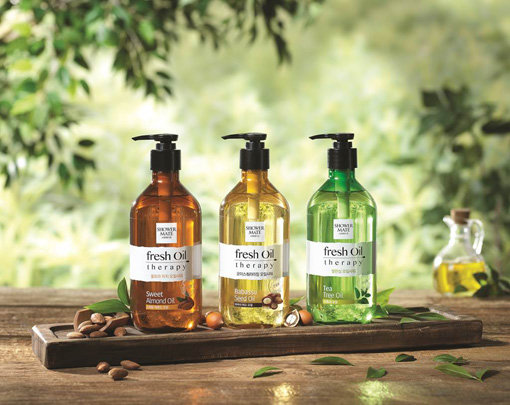 애경이 ‘샤워메이트 프레쉬 오일 테라피’(사진)를 내놓았다. 자연에서 추출한 오일과 100% 식물유래 계면활성제 성분을 함유한 내추럴 바디워시다. 지성피부용 밸런싱·건성피부용 모이스춰라이징·극건성피부용 울트라 리치 등 총 3종으로 구성됐다. 피부타입별 맞춤오일을 함유해 지성·건성·악건성 등 모든 피부타입에 사용할 수 있도록 개발됐으며, 오일 특유의 끈적임 없이 바디피부를 촉촉하게 관리해준다. 애경 측은 “최근 가성비 높은 셀프 뷰티케어 화장품이 각광 받고 있는 점에 착안한 제품”이라며 “바디워시 구매 시 가장 중요하게 여기는 보습과 성분을 강화했다”고 했다.