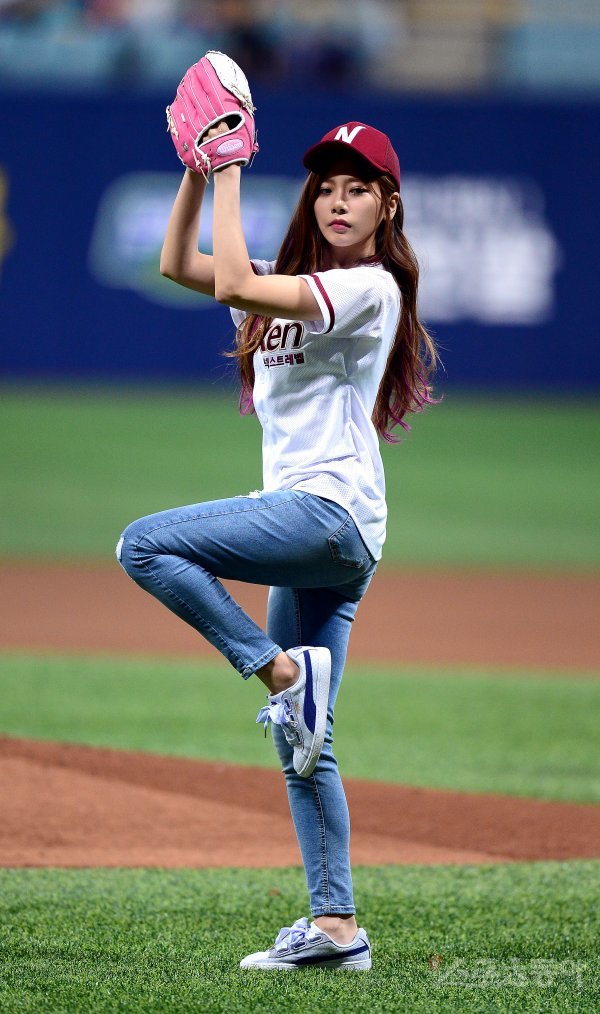 11일 서울 고척스카이돔에서 ‘2017 타이어뱅크 KBO 리그’ kt위즈와 넥센히어로즈의 경기가 열렸다. 경기 전 걸그룹 ‘드림캐쳐’ 지유가 시구를 하고 있다.