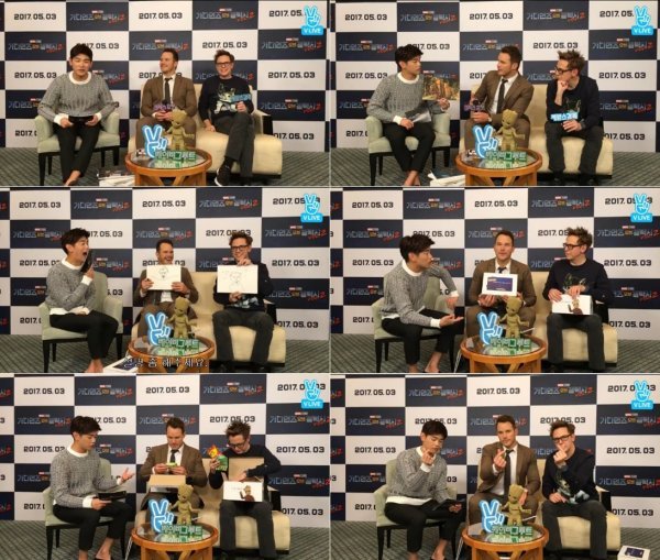 ‘가디언즈 오브 갤럭시 VOL. 2’는 사상 최악의 빌런 ‘타노스’에 맞서 은하계를 구했던 4차원 히어로 ‘가.오.갤’이 더욱 거대한 적에 맞서 새로운 모험에 나서는 마블의 액션 히어로 영화다. ‘가디언즈 오브 갤럭시 VOL. 2’의 허세충만 리더 ‘스타로드’ 역 크리스 프랫과 제임스 건 감독이 4월 11일(화) 오후 4시 15분에 네이버 V라이브를 통해 생중계로 한국의 팬들을 만났다. 믿고 맡기는 인터뷰로 언제나 화제를 모으는 에릭 남의 사회로 진행된 이번 V라이브는 흥겨운 리듬과 음악으로 시작부터 예비 관객들의 눈길을 모았다. 본격적인 V라이브 방송에 앞서 크리스 프랫과 제임스 건 감독은 한국에 있는 관객들은 물론, 전 세계 그리고 은하계에 있는 외계인 팬들에게 인사를 전해 웃음을 자아냈다.