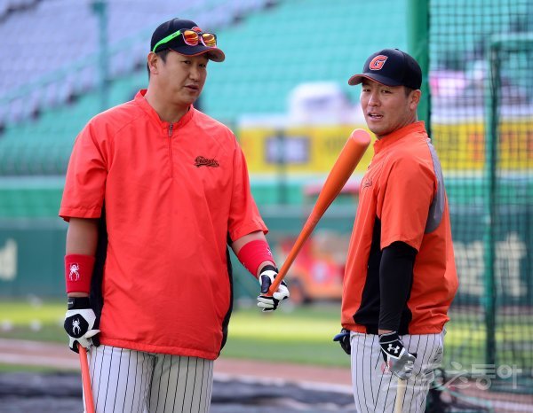 이대호-강민호 ‘오늘도 시원하게 쳐보자고’