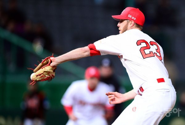 12일 인천 SK행복드림구장에서 ‘2017 타이어뱅크 KBO리그’ SK 와이번스와 롯데 자이언츠의 경기가 열렸다. 8회초 2사에서 롯데 손아섭의 타구를 SK 선발 켈리가 잡으려다 놓치고 있다.