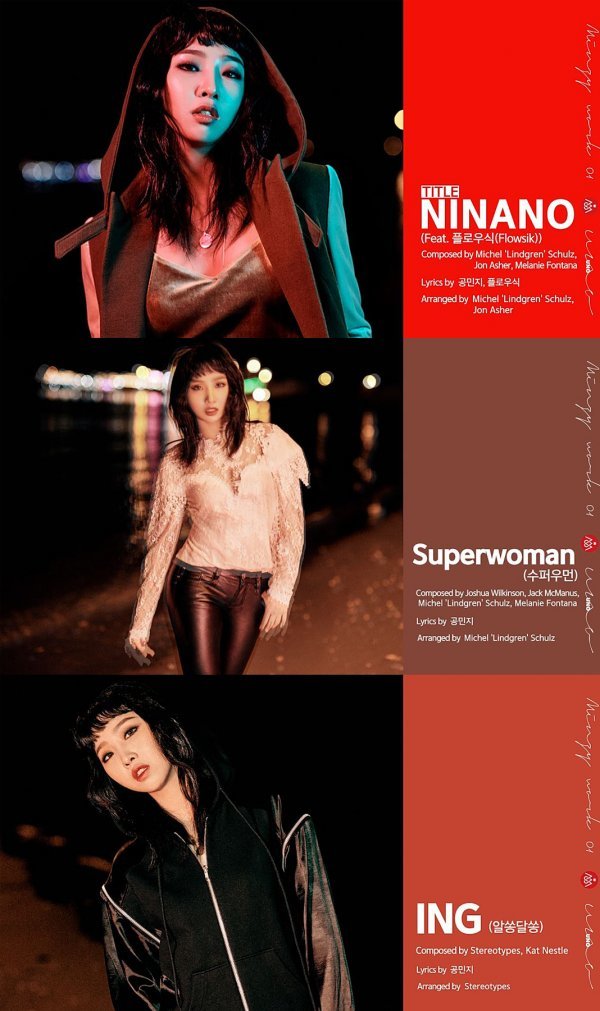 이어 심플하고 중독성 있는 멜로디와 공민지의 세련된 보컬이 돋보이는 곡 ‘Superwoman (수퍼우먼)’, 팝 댄스에 레게를 가미한 곡 ‘ING (알쏭달쏭)’, 박재범의 피처링으로 화제를 모은 곡 ‘Flashlight‘, 공민지의 첫 자작곡 ‘Beautiful Lie’가 차례로 공개됐다.