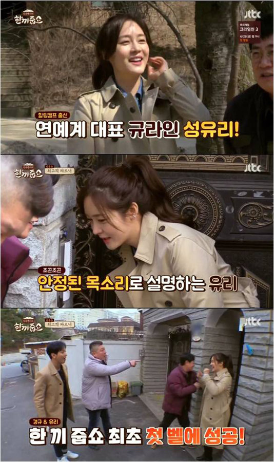 이경규와의 재회다. 배우 성유리가 JTBC ‘한끼줍쇼’에서 오랜만에 예능감을 뽐냈다.