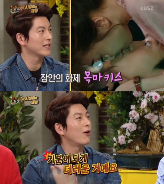 ‘해피투게더3’ 류수영이 아내 박하선과 하석진의 목마 키스에 대해 언급했다.