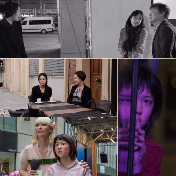 홍상수 감독의 영화 ‘그 후’와 ‘클레어의 카메라’ 스틸 그리고 봉준호 감독의 ‘옥자’ 스틸(맨 위에서 시계 역방향으로)