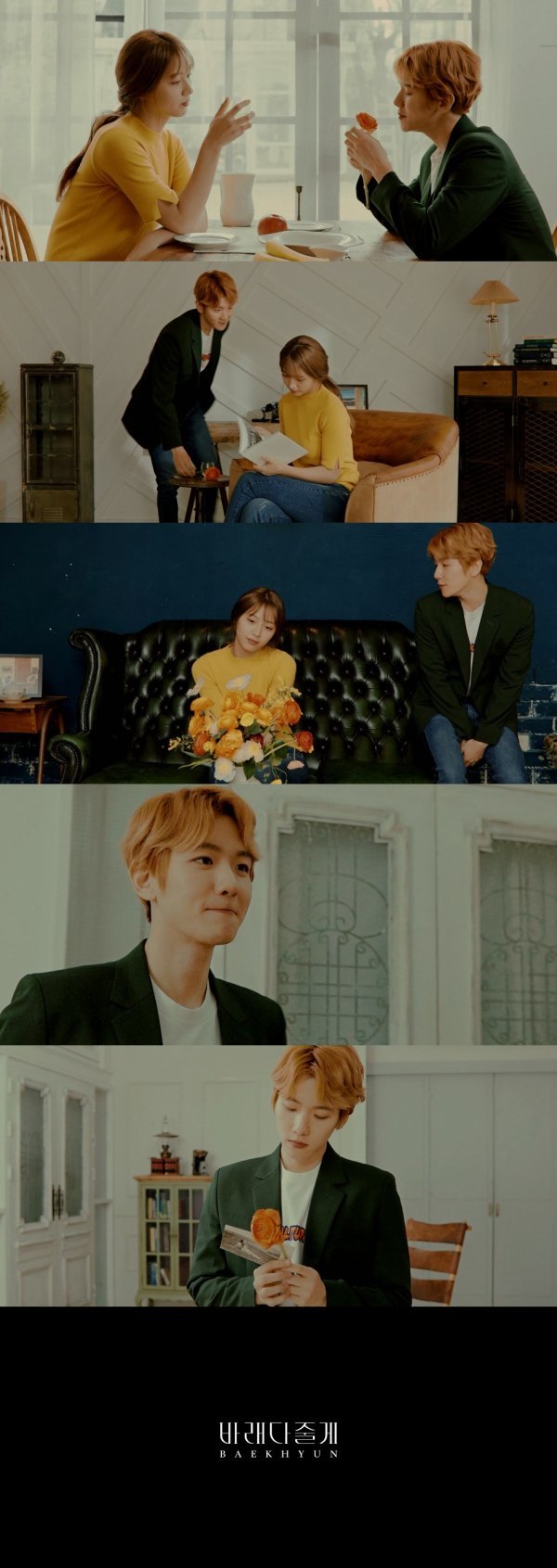 원테이크 기법으로 촬영된 이번 뮤직비디오는 여자주인공에게 자신의 마음을 고백하는 백현의 모습이 그려진다. 특히 노래 제목과 같은 ‘바래다줄게’라는 가사는 감미로운 백현의 목소리를 더욱 설레게 만들기 충분하다.