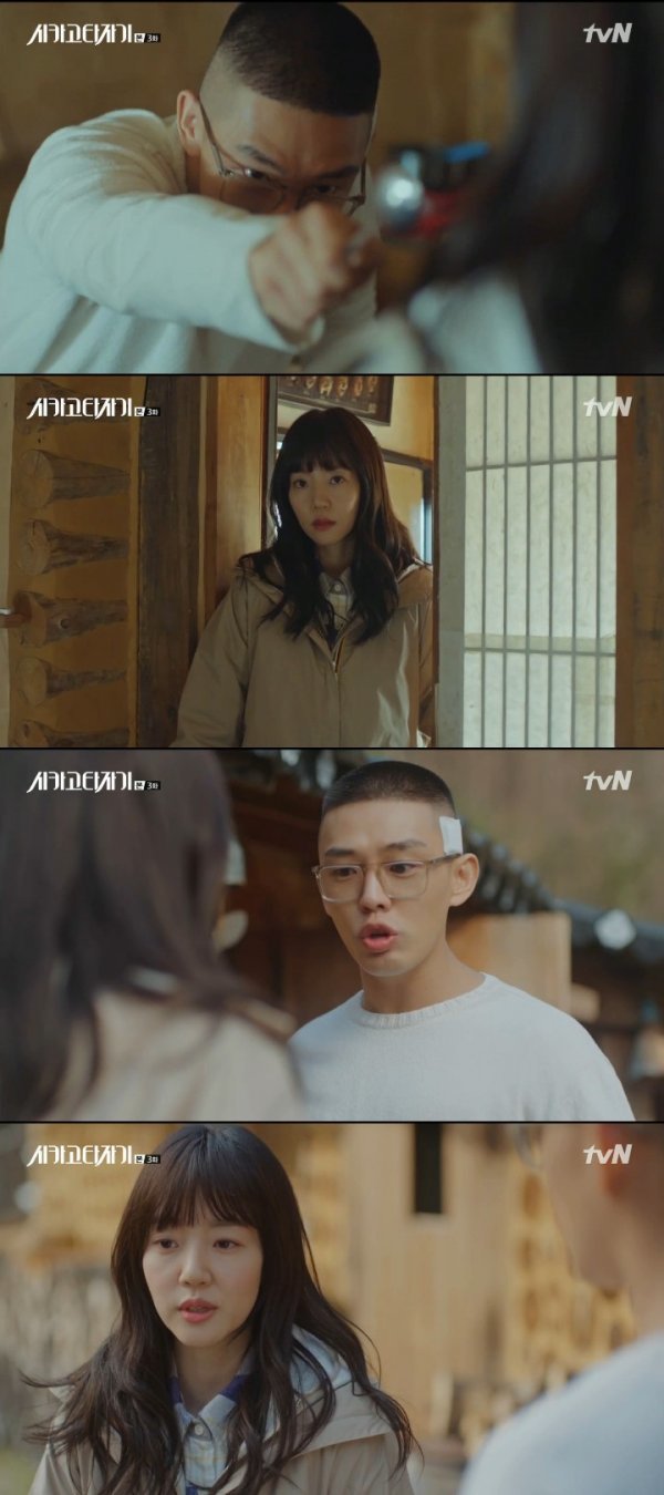 14일 방송된 tvN ‘시카고 타자기’에서는 자신이 감금을 당했다고 생각한 한세주(유아인)이 탈출을 시도하려다 전설(임수정)에게 들키는 모습이 그려졌다.