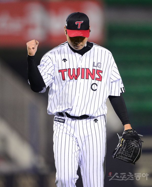14일 잠실야구장에서 ‘2017 타이어뱅크 KBO 리그’ LG트윈스와 kt위즈의 경기가 열렸다. 7회초 1사 1루에서 병살로 이닝을 무실점으로 막은 LG 선발 류제국이 주먹을 쥐며 기뻐하고 있다.