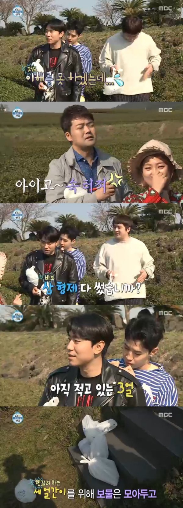 세 얼간이들은 녹차밭에서 보물찾기를 할 때 게임의 룰을 이해 못해 웃음을 자아냈다. 자신의 이름과 벌칙은 하나씩 쪽찌에 적어 숨겨놔야 하는데 계속해서 이해를 못하고 물어봐 전현무, 한혜진, 박나래가 답답해하며 “아 저 세 얼간이들”이라고 말했다.