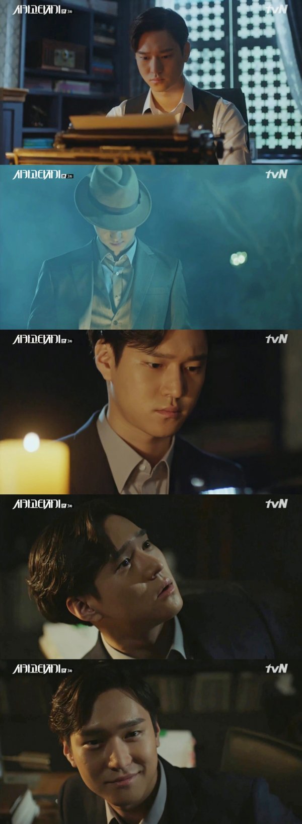 이날 유진오는 한세주가 자리를 비운 사이 의문의 타자기로 원고를 완성했다. 유진오에 의해 타닥타닥 강렬한 소리를 내며 움직이는 타자기. 이 소리를 따라 온 한세주. 이렇게 두 사람은 처음으로 마주했다. 유진오는 “유령작가 유진오입니다”라고 자신만만한 듯, 혹은 의미심장한 듯한 목소리와 표정으로 자기 소개를 했다. 이 같은 유진오의 모습은 극에 묘한 긴장감을 불어넣었다.