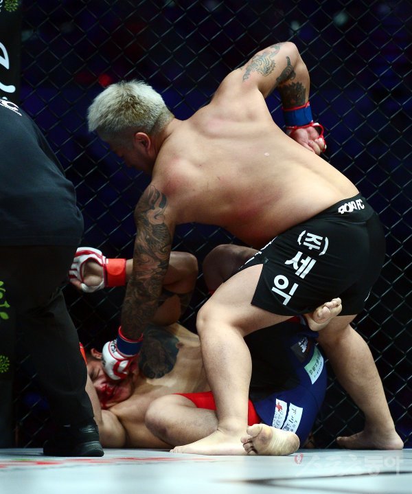 15일 서울 장충체육관에서 ‘로드FC 38’ 경기가 열렸다. -84kg 미들급 쿠와바라 기요시(일본)와 김대성(한국)의 경기에서 김대성이 강력한 공격을 펼치고 있다.