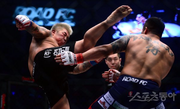 15일 서울 장충체육관에서 ‘로드FC 38’ 경기가 열렸다. -84kg 미들급 쿠와바라 기요시(일본)와 김대성(한국)의 경기에서 김대성이 발차기 공격을 펼치고 있다.