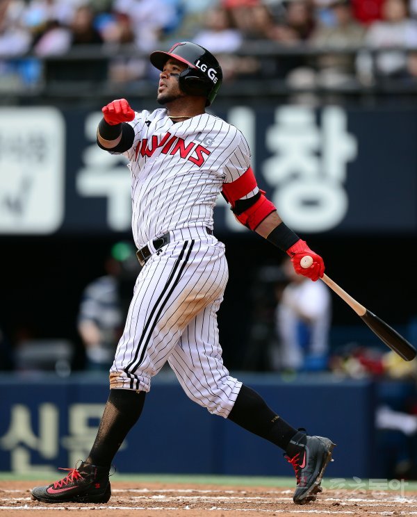 16일 서울 잠실야구장에서 ‘2017 타이어뱅크 KBO 리그’ kt위즈와 LG트윈스의 경기가 열렸다. 6회말 2사 LG 히메네스가 좌월 솔로 날리고 있다.