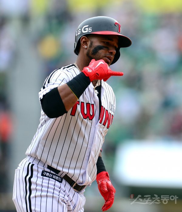 16일 서울 잠실야구장에서 ‘2017 타이어뱅크 KBO 리그’ kt위즈와 LG트윈스의 경기가 열렸다. 6회말 2사 LG 히메네스가 좌월 솔로 날리고 그라운드를 돌고 있다.