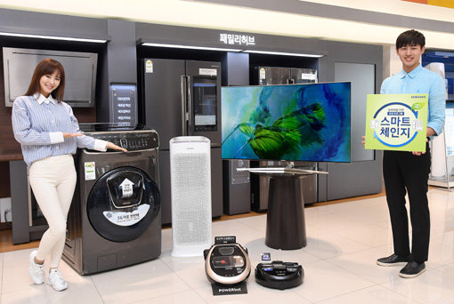 삼성전자는 연말까지 ‘스마트 체인지’ 캠페인을 실시한다. TV·냉장고·세탁기·에어컨·김치냉장고·청소기·공기청정기·PC 등 행사 모델을 구매하고 사용하던 가전제품을 반납하면 최대 40만원 상당의 포인트나 캐시백, 상품권 등의 혜택을 준다. 삼성 디지털프라자에서 삼성카드를 이용해 행사모델을 구매하면 10월까지 누적 금액에 따라 최대 100만원 상당의 캐시백을 지급하는 ‘스마트 마일리지’ 혜택도 추가로 준다.