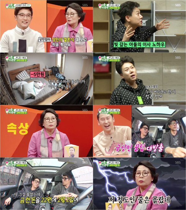 이날 최고의 1분도 이상민 차지였다. 새집으로 이사를 앞두고 자신의 생활의 꿀팁으로 하나하나 스스로 자신의 이사짐을 싸고, 포장 이사의 절약 노하우를 전수하며 으쓱해 하는 모습은 최고 21. 6%(닐슨/수도권기준)까지 치솟으며 이번 주 최고의 1분으로 등극했다. 이상민의 생활의 꿀팁은 스튜디오의 네 어머님들도 ‘대단하네‘라며 감탄하게 만들어 ‘궁상남’ 이상민의 앞으로의 이야기를 더욱 궁금하게 만들었다.