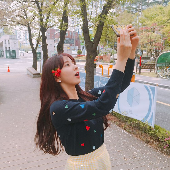 사진 속 이수현은 하트무늬 니트를 입고, 머리에 빨간 꽃을 꽂고 봄 날씨를 만끽하는 모습이다. 한층 더 뚜렷해진 이목구비와 그녀만의 톡톡 튀는 분위기가 돋보인다.