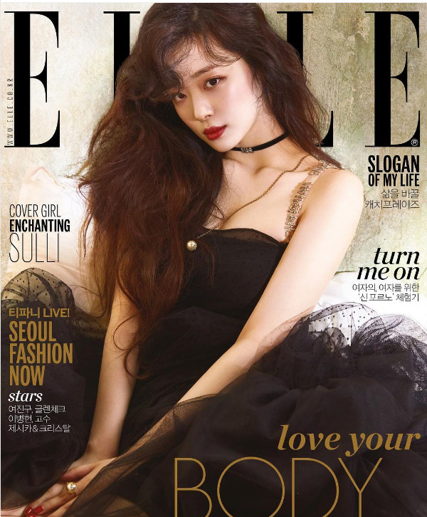 공개된 사진에는 엘르 5월호 커버를 장식한 설리의 모습이 담겨 있다. 섹시한 매력을 한껏 발산하는 설리의 모습이 시선을 끈다. 러블리한 매력 대신 시크하면서도 매혹적인 분위기를 어필하고 있다.