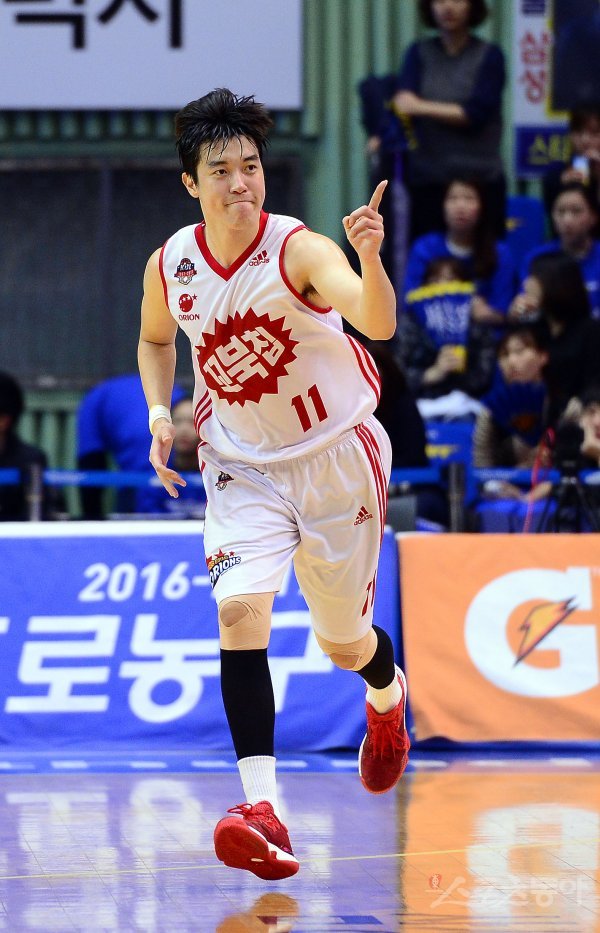 17일 서울 잠실실내체육관에서 열린 ‘2016~2017 KCC 프로농구’ 4강 플레이오프 4차전 오리온과 삼성의 경기에서 오리온 허일영이 3점슛을 성공시킨 후 기뻐하고 있다.