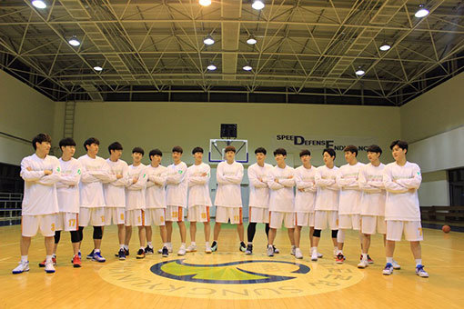 대학농구에서 돌풍을 일으키고 있는 성균관대 농구부 주장 김남건은 “팀의 플레이오프 진출에 집중하고 싶다. 팀 성적에 집중하다보면 개인 성적 역시 따라올 것”이라고 했다. 김남건을 비롯한 성균관대 농구부 선수들이 포즈를 취하고 있다.