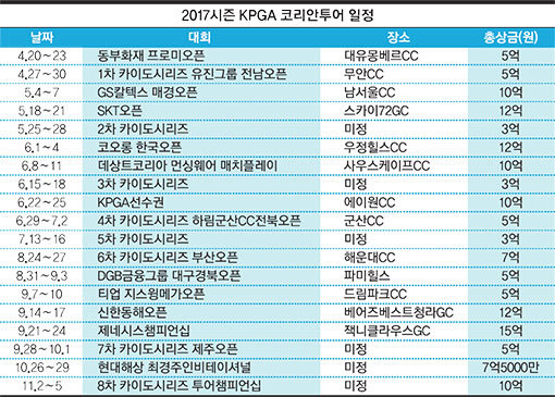 KPGA 코리안투어는 20일 경기도 포천의 대유몽베르CC에서 열리는 동부화재 프로미오픈(총상금 5억원)을 시작으로 개막한다. 누가 시즌 첫 우승트로피의 주인이 될지 관심이 쏠린다.