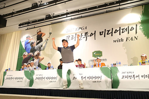 2017시즌 한국프로골프(KPGA) 코리안투어는 화려한 샷 대결만큼 볼거리가 풍성해질 전망이다. 개막을 사흘 앞둔 17일 서울 서초구 더케이호텔에서 열린 미디어데이에 참석한 선수들은 그동안 숨겨왔던 특별한 우승 세리머니를 공개하는 등 화끈한 팬 서비스를 예고했다.