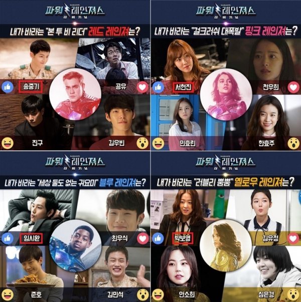 지난 10일(월)부터 17일(월)까지 NEW 공식 페이스북을 통해 진행된 한국판 ‘파워레인져스’ 가상 캐스팅 설문조사에 따르면 ‘레드 레인져’ 송중기(361명 중 186명 투표), ‘핑크 레인져’ 서현진(390명 중 227명 투표), ‘블루 레인져’ 임시완(334명 중 147명 투표), ‘옐로우 레인져’ 박보영(360명 중 282명 투표), ‘블랙 레인져’ 류준열(928명 중 748명 투표)이라는 환상의 가상 캐스팅이 완성되었다. 이번 설문조사는 ‘파워레인져스’ 각각의 개성과 부합되는 매력만점의 스타들이 선정되어 팬들의 뜨거운 호응을 얻었다.