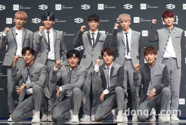 그룹 SF9이 18일 오후 서울 광진구 예스24 라이브홀에서 열린 두 번째 미니앨범 \'Breaking Sensation\' 발매 기념 쇼케이스에서 포토타임을 하고 있다.