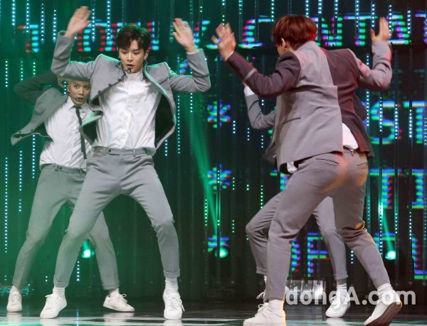 그룹 SF9이 18일 오후 서울 광진구 예스24 라이브홀에서 열린 두 번째 미니앨범 \'Breaking Sensation\' 발매 기념 쇼케이스에서 신곡무대를 선보이고 있다.