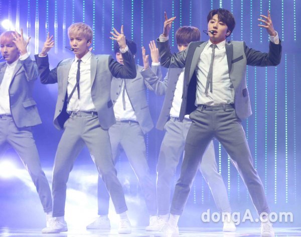 그룹 SF9이 18일 오후 서울 광진구 예스24 라이브홀에서 열린 두 번째 미니앨범 \'Breaking Sensation\' 발매 기념 쇼케이스에서 신곡무대를 선보이고 있다.