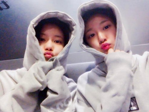 사진 속 설현과 혜정은 같은 후드를 쓰고 입술을 쭉 내밀고 카메라를 바라보고 있다. 마치 쌍둥이 같은 둘의 모습이 깜찍함을 더했다.