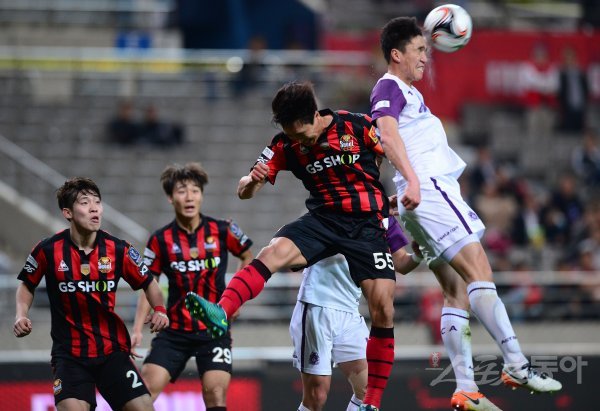19일 서울월드컵경기장에서 2017 KEB하나은행 FA컵 32강전 FC서울과 안양FC의 경기가 열렸다. 후반 안양FC 강준우가 프리킥 상황에서 공을 헤딩으로 걷어내고 있다.