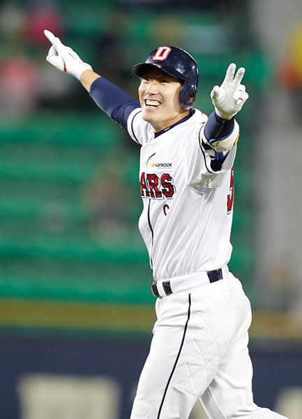 꼬여만 가는 경기, 그러나 9회말 캡틴 김재호가 분위기 반전을 이끄는 안타를 꼭 필요한 순간 때려냈다. 승리의 여신이 미소를 보내듯 지독히 따르지 않았던 행운도 있었다. 9회말 선두타자로 나선 박세혁은 7회부터 호투하고 있던 권오준을 상대로 1루 땅볼을 쳤다. 그러나 갑자기 튀어 오르는 불규칙 바운드로 출루에 성공했다. 이어 박건우의 희생번트, 허경민의 3루 땅볼 아웃으로 2사 2루. 김재호는 권오준의 초구를 과감히 공략 중견수 왼쪽에 떨어지는 끝내기 안타(시즌2·통산992·개인2호)로 2-1 행운의 승리를 이끌었다.