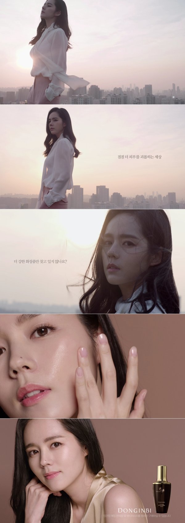 광고 속에서 한가인은 흰 셔츠를 입고 꾸밈없이 자연스러운 모습으로 등장한다. 그는 복잡한 도시를 배경으로 독보적인 아름다움을 과시하고 있다.