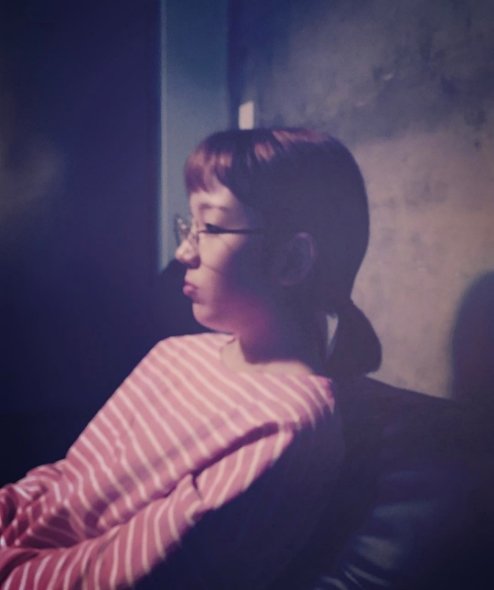 사진 속 백아연은 소파에 앉아 동그란 안경을 쓰고 머리를 묶은 채 허공을 응시하고 있다. 단발머리를 묶어 머리가 동그랗게 말린 머리가 깜직하다.