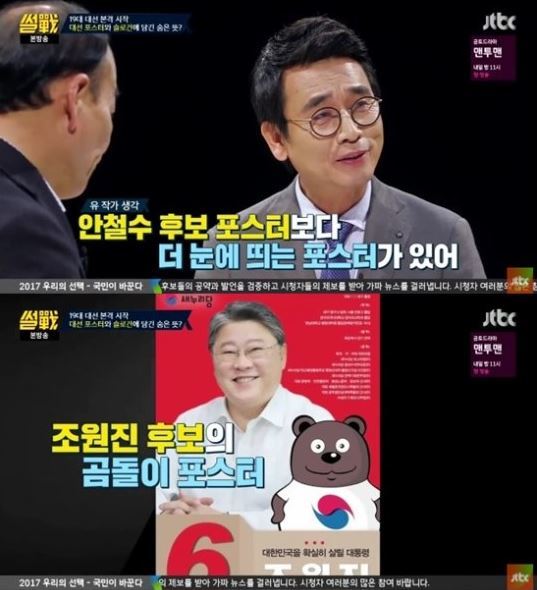 이어 김구라가 가장 마음에 드는 포스터를 묻자 유시민은 "조원진 후보 포스터가 그렇다"며 계속해 '곰돌이 포스터'를 언급했다.