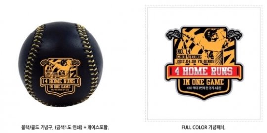기념구와 자수 패치에는 고급스러운 골드 블랙 색상으로 최정 선수의 호쾌한 스윙 동작, 기록 달성일, 상대팀 등이 표기된 기념 엠블럼이 새겨져 있다. 판매가는 기념구 2만5000원, 자수 패치 1만원이다.