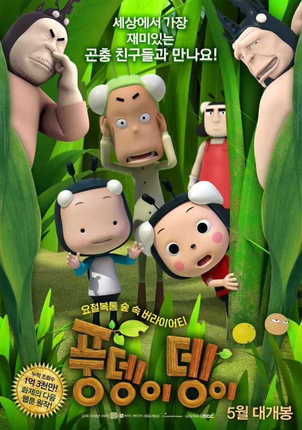 오는 5월 IPTV 개봉 확정과 함께 공개된 ‘풍뎅이뎅이’의 메인포스터는 작품 속 배경이 되는 숲 속을 배경으로 개성 넘치는 주인공들의 모습을 담아 이들이 펼쳐 보일 이야기에 대한 호기심을 자극한다. 순진하고 엉뚱한 표정이 시선을 사로잡는 ‘뎅이’를 중심으로 악동 같은 귀여운 모습의 ‘가얌이’, 어리바리한 모습이 사랑스러운 ‘무치’까지 숲 속 3인방을 중심으로 까칠한 바퀴벌레 ‘레미’, 듬직한 일개미 아줌마 ‘토목미’, 몸짱 사슴벌레 아저씨 ‘슴이’ 등 다채로운 곤충 캐릭터들이 총출동해 이들이 선사할 버라이어티한 재미를 예고하는 한편, ‘세상에서 가장 재미있는 곤충 친구들과 만나요!’라는 메인 카피가 더해지며 새로운 인기 애니메이션으로 등극할 ‘풍뎅이뎅이’에 대한 기대감을 증폭시킨다.