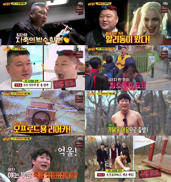 15일 방송된 JTBC ‘아는 형님’에서는 멤버들이 시청률 5% 돌파 공약을 이행하는 모습이 그려진 가운데, 강호동과 이수근이 제 몫을 톡톡히 해내며 남다른 웃음을 전했다.