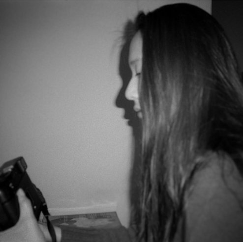사진 속 크리스탈은 카메라로 추정되는 물건을 손에 들고 카메라를 향해 옆모습을 보이고 있다. \'흑백\'효과로 크리스탈의 분위기가 더욱 신비스러워 보인다.