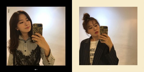 21일 레드벨벳의 공식 인스타그램에는 멤버 슬기의 셀카 사진 두 장이 업로드 됐다.