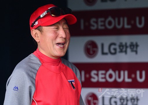 21일 잠실야구장에서 ‘2017 타이어뱅크 KBO 리그’ LG트윈스와 KIA타이거즈의 경기가 열렸다. KIA 김기태 감독이 취재진과 인터뷰를 하는 중 환하게 웃고 있다. 잠실 | 김진환 기자 kwangshin00@donga.com