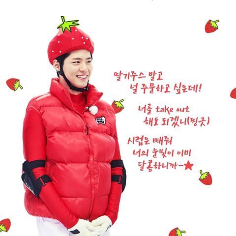 딸기모자를 쓴 박보검의 사진에 “딸기주스 말고 널 주문하고 싶은데. 너를 테이크 아웃해도 되겠니. 시럽은 빼줘. 너의 눈빛은 이미 달콤하니까”라는 글을 올려 박보검에 대한 애정을 쏟아냈다.