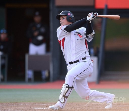 22일 수원 kt위즈파크에서 ‘2017 타이어뱅크 KBO리그’ kt위즈와 한화이글스의 경기가 열렸다. kt 박경수가 3회말 1사 2,3루에서 2타점 적시타를 치고 있다. 수원 | 김진환 기자 kwangshin00@donga.com