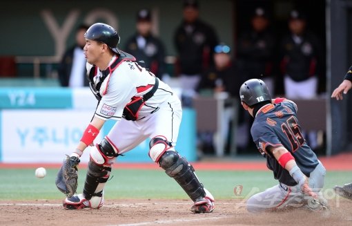 22일 수원 kt위즈파크에서 ‘2017 타이어뱅크 KBO리그’ kt위즈와 한화이글스의 경기가 열렸다. 5회초 2사 2루에서 한화 이용규가 송광민의 적시타 때 홈으로 쇄도해 세이프 되고 있다. 수원 | 김진환 기자 kwangshin00@donga.com