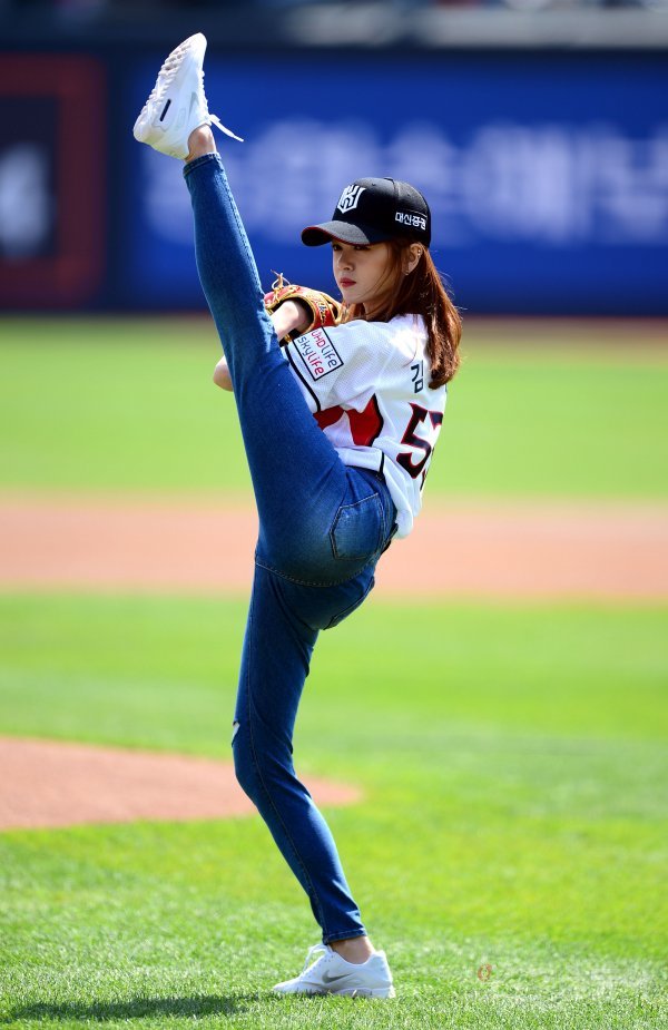 23일 경기도 수원 kt위즈파크에서 ‘2017 타이어뱅크 KBO리그’ kt 위즈와 한화 이글스의 경기가 열렸다. 경기전 배우 김보미가 시구를 던지고 있다.