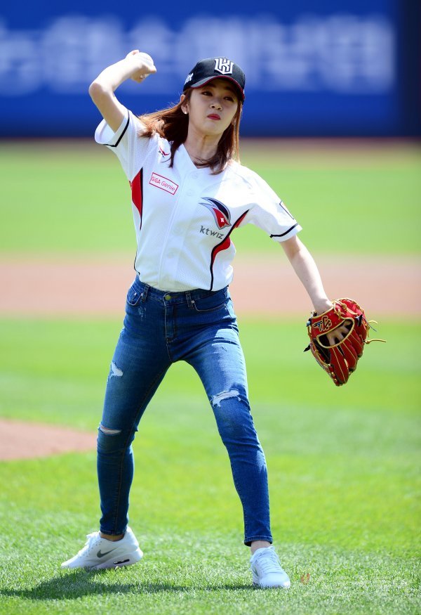 23일 경기도 수원 kt위즈파크에서 ‘2017 타이어뱅크 KBO리그’ kt 위즈와 한화 이글스의 경기가 열렸다. 경기전 배우 김보미가 시구를 던지고 있다.
