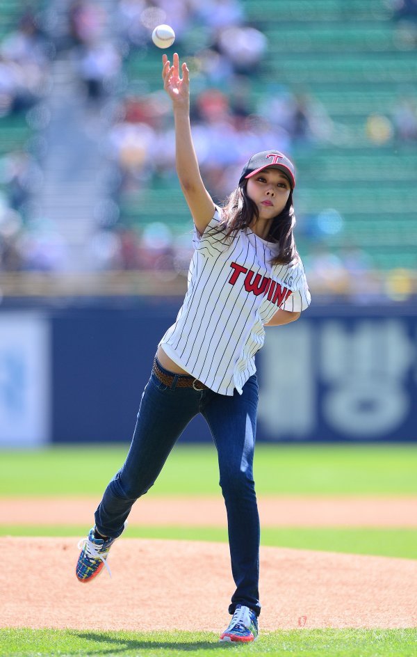 23일 잠실야구장에서 ‘2017 타이어뱅크 KBO 리그’ LG트윈스와 KIA타이거즈의 경기가 열렸다. 경기를 앞두고 모델 한혜진이 시구 헁사에서 힘차게 공을 던지고 있다.